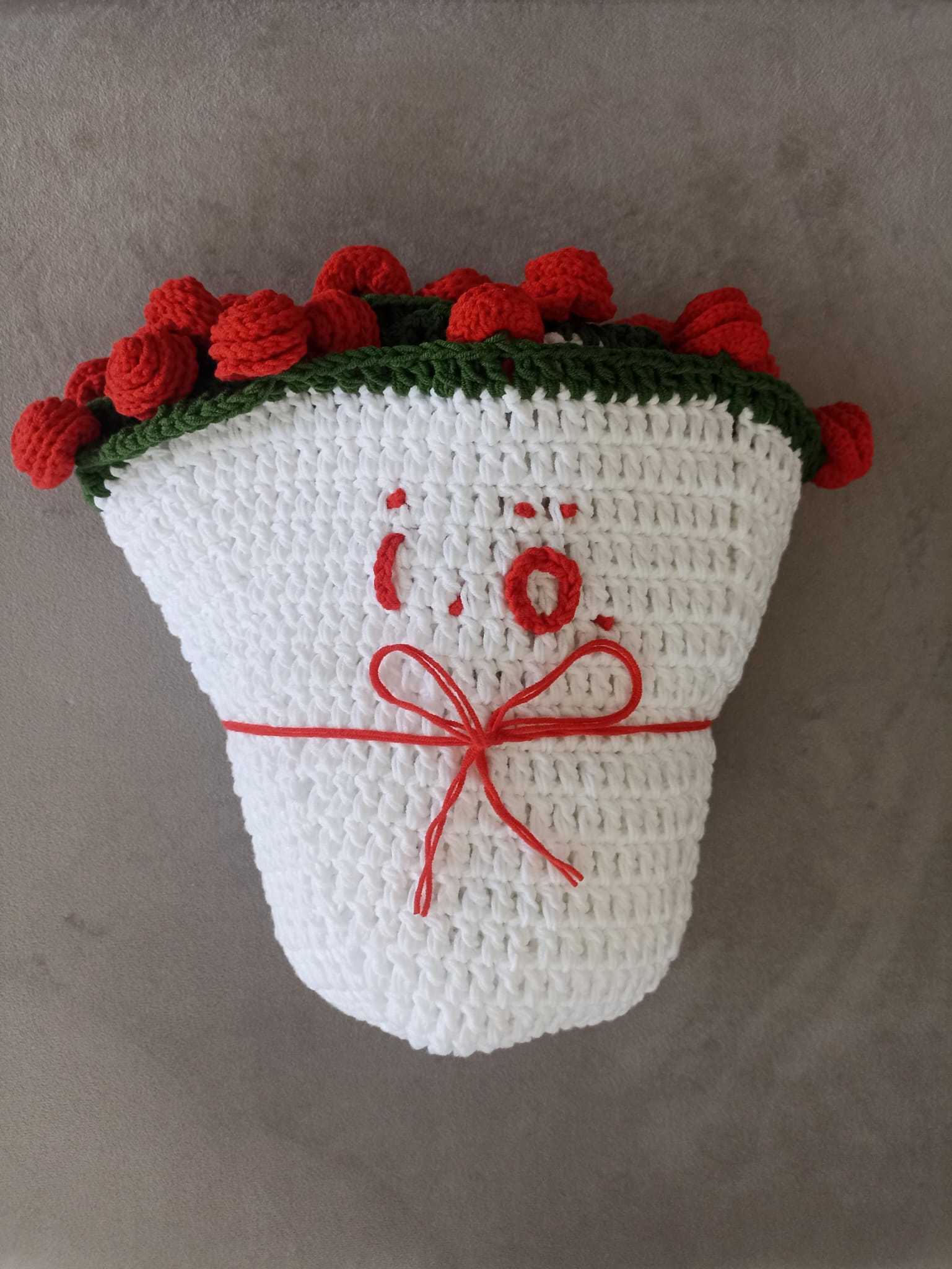 Evinize Zarif Bir Dokunuş: El Yapımı Kırmızı Gül Motifli Buket Battaniye